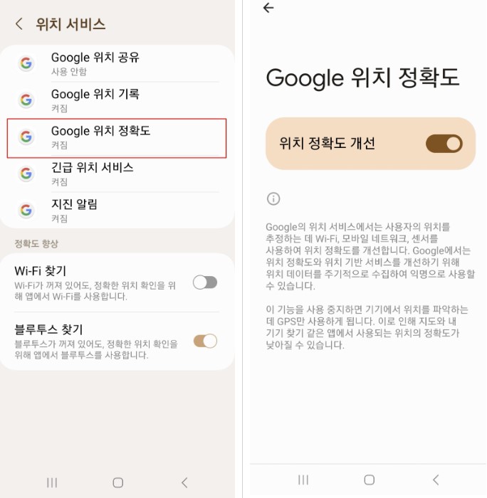 3. Google 위치 정확도 설정 클릭