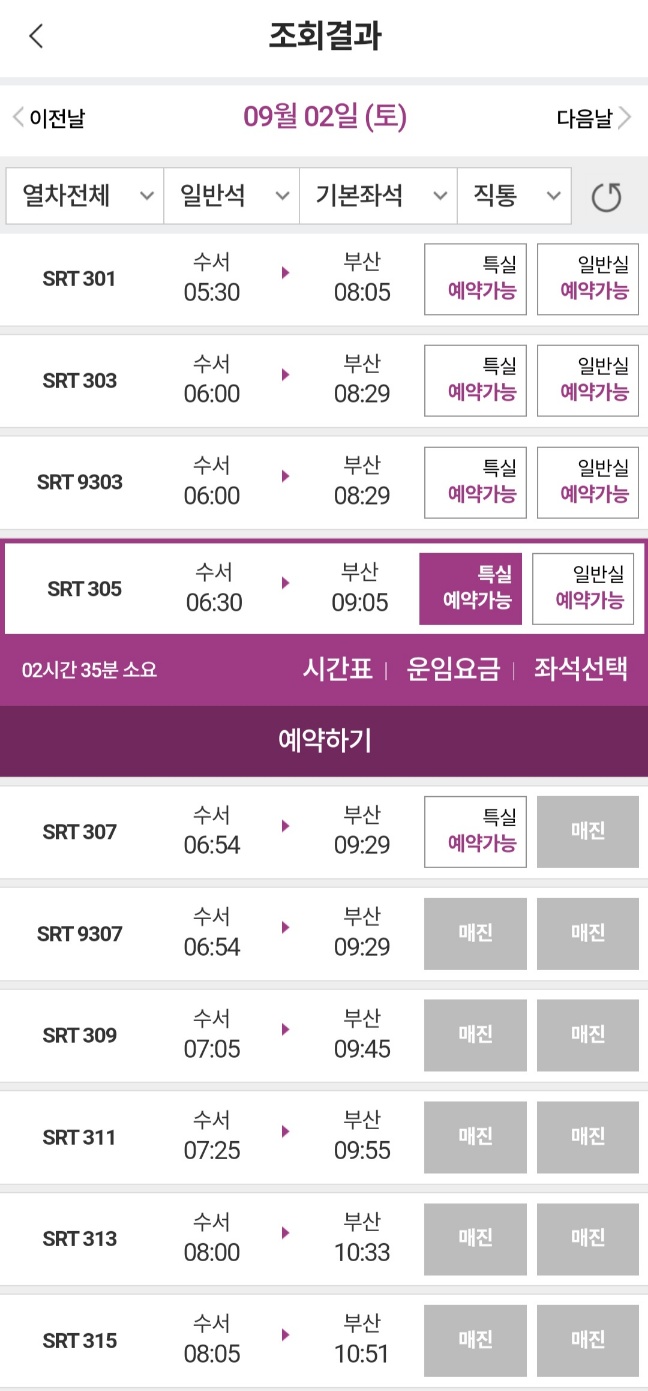 | 9월 7일 (목) | 07:00 ~ 13:00 | 홈페이지 (PC, 모바일) | 호남/전라선 |
