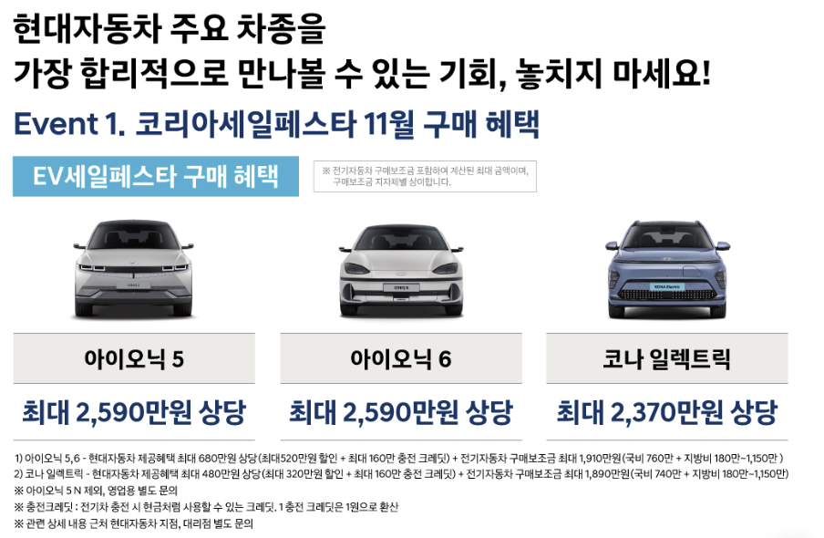 전기차 3개 차종을 포함하여 승용차, RV 등 주요 차종별 할인율이 다르므로,